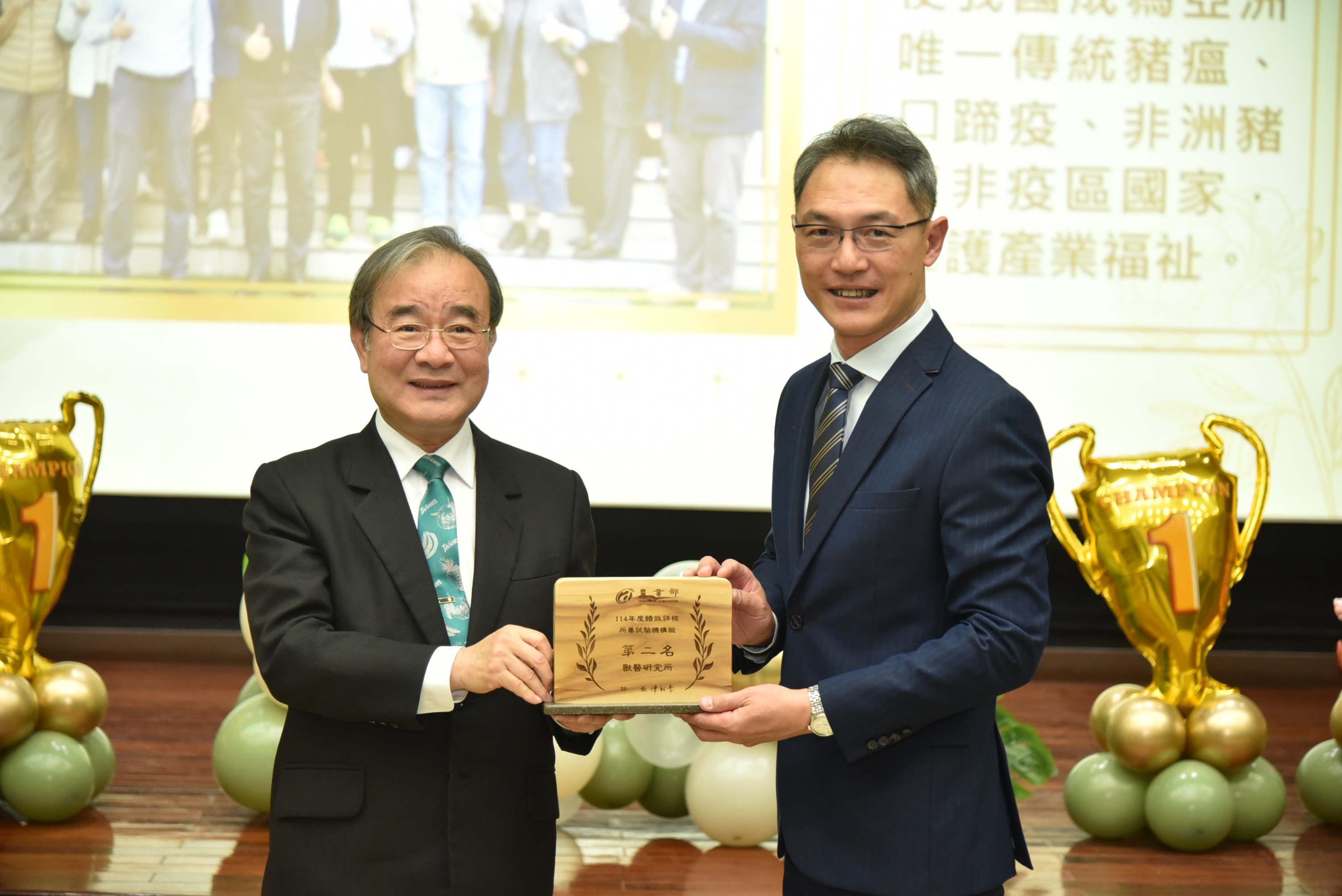 農業部於115年2月6日舉行頒獎典禮表揚114年度績效評核各組前3名之績優單位(機關),本所鄧明中所長偕同各單位主管及同仁出席受獎及觀禮。