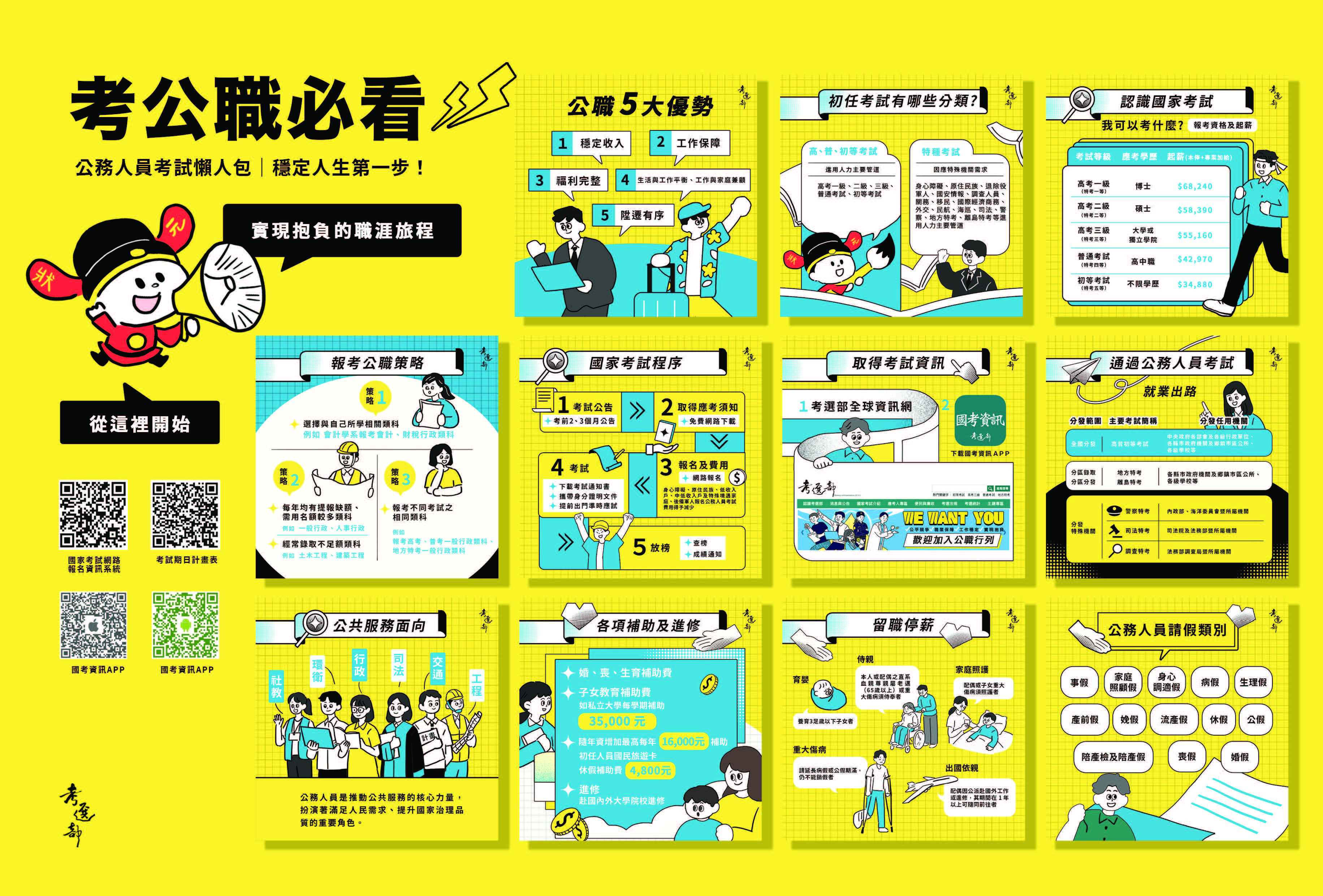 為拓展國家考試宣導管道,便利各界瞭解公務人員考試相 關資訊,考選部已製作「公務人員考試懶人包」提供各界參考。