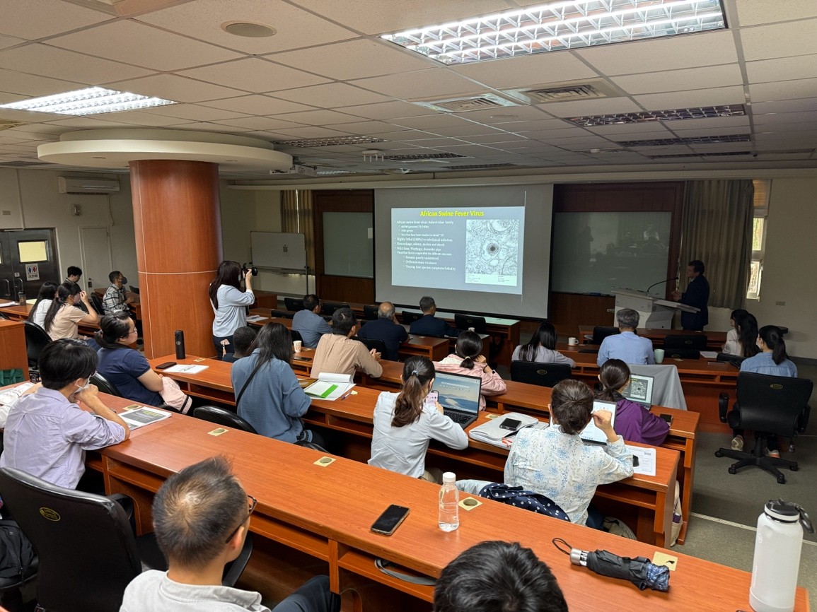 本所蔡國榮副研究員進行專題演講:臺灣執行非洲豬瘟病毒監測成果
